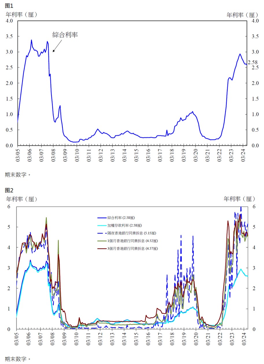 8月19日,香港金融管理局公布2024年7月底的综合利率。反映银行平均资金成本的综合利率在2024年7月底为2.58厘,较2024年6月底的2.62厘下跌4基点。综合利率下跌,主要反映月内存款的加权资金成本减少。
